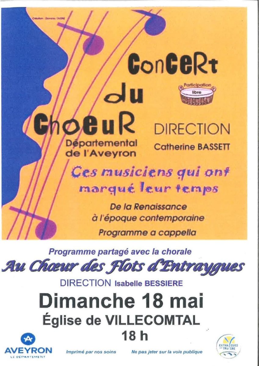 Concert du cœur départemental de l’Aveyron et de la chorale « au cœur des flots d’Entraygues »
